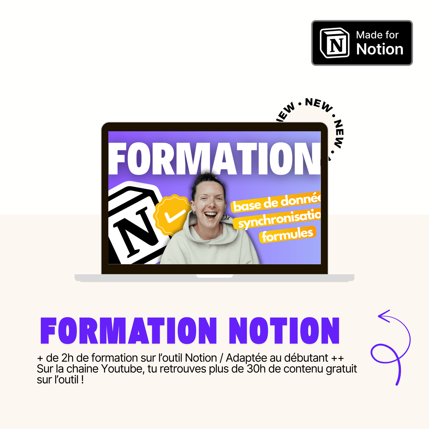 ✅ Une formation Notion de 2h : Impossible d'être perdu même si tu es débutant.