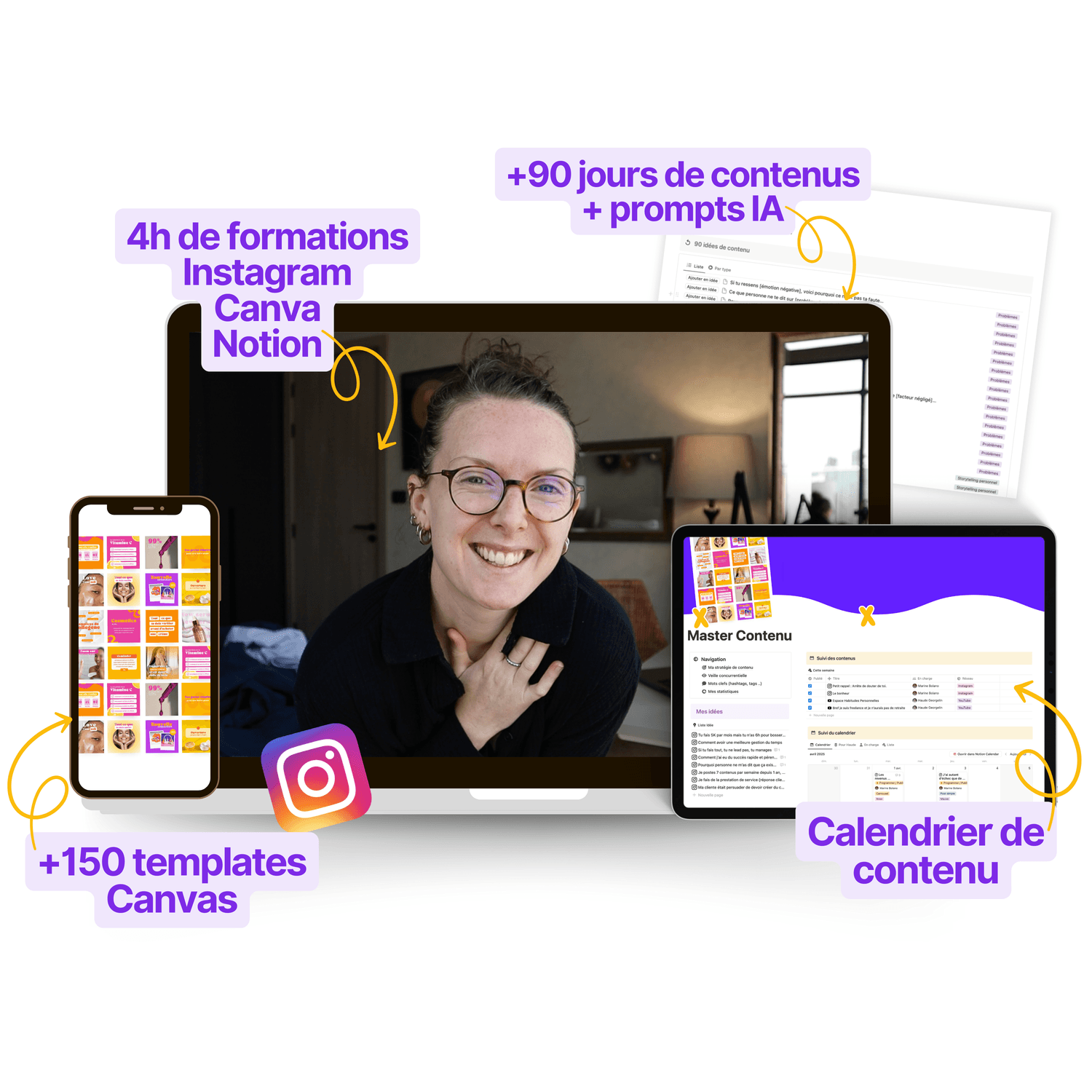 Plus de 4h de formation (Instagram, Canva, Notion)