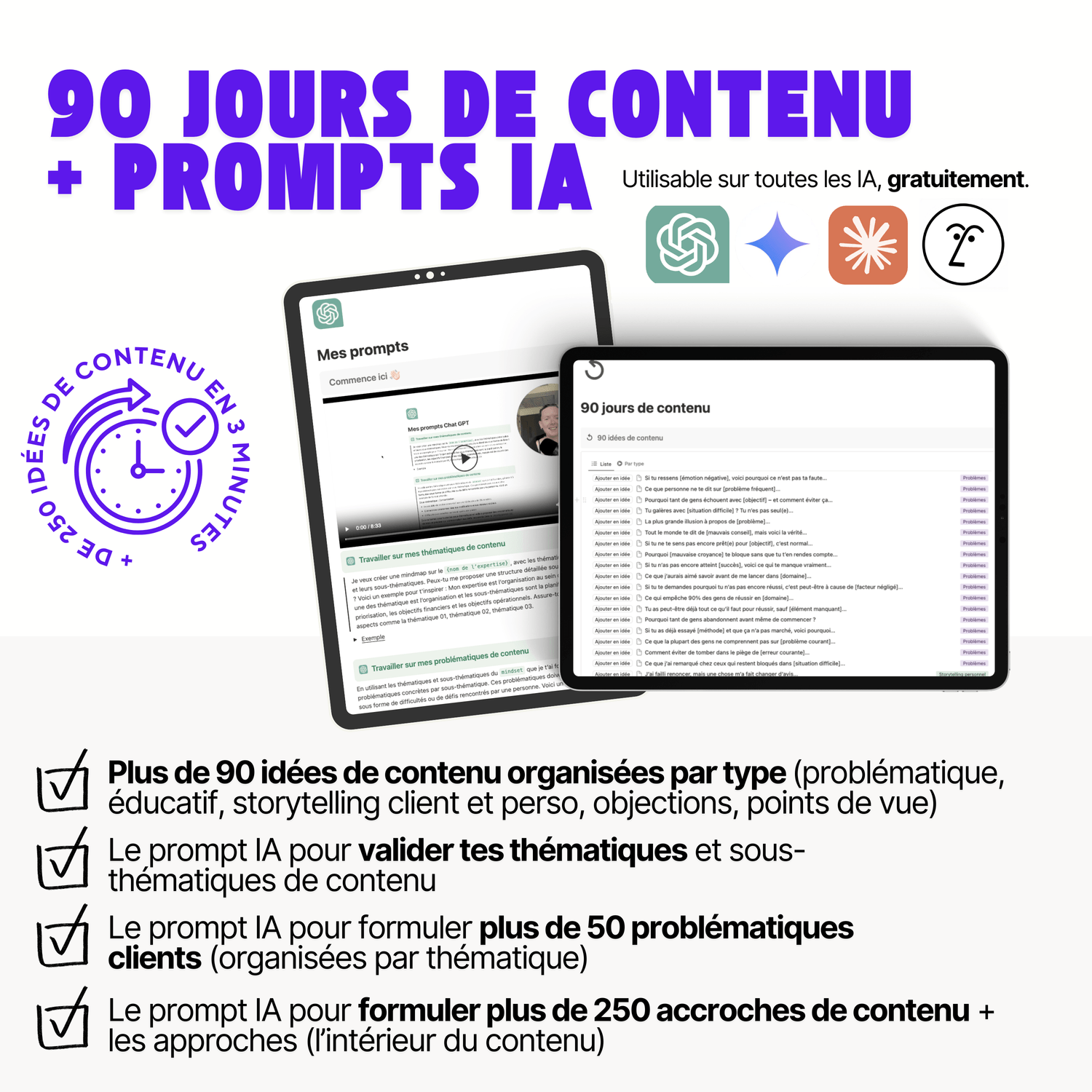 ✅ Plus de 90 jours d’idées de contenu pour t’aider à poster régulièrement.